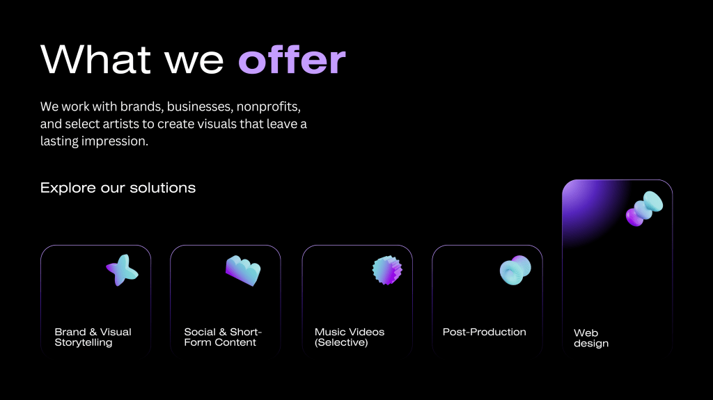 We blend design and technology to create visuals that feel modern, intentional, and unforgettable.